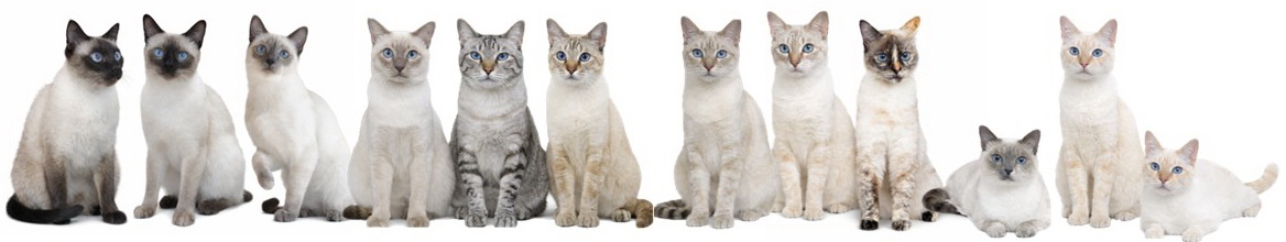 Grundsätzlich gibt es bei Thaikatzen vier Standardfarben: seal, chocolate,blue und lilac, zuzüglich der Farben red und creme. Sealpoint ist die traditionellste aller Varianten. Die Farbe chocolate ist die Mutation von seal, durch ein spezielles Gen hervorgerufen. Bluepoint ist die Farbverdünnung von seal point und lilac von chocolate point.