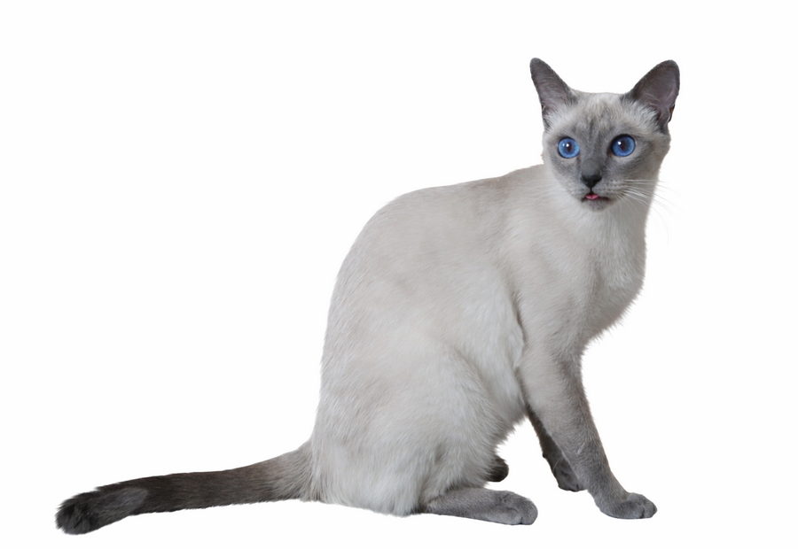 Blue point ist die genetisch farbverdünnte Version der seal point Thaikatze. Die Pointfarbe ist ein blaugrau, die Körperfarbe zeigt ein eisfarbenes Weiß, auf dem Rücken einen Blauschimmer.