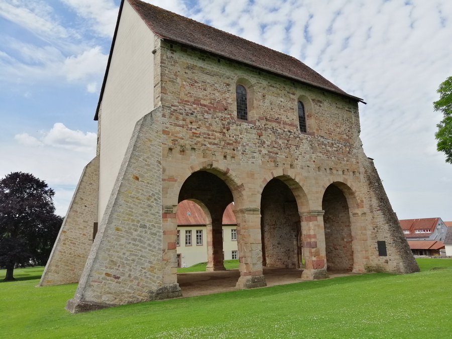 Die Stadt Lorsch in Hessen beherbergt die berühmte „Königshalle“. Abgesehen von den gotischen Giebelformen und einigen Resten früherer Ausbesserungen und Fertigstellungen ist dieses Torhaus eines der ganz wenigen Gebäude aus der karolingischen Epoche, dessen ursprüngliches Erscheinungsbild weitgehend erhalten geblieben ist. Es erinnert an die einstige Größe einer Abtei, die um 764 gegründet wurde. Ihren Höhepunkt erreichte die Klosteranlage vermutlich 876, als sie nach dem Tod Ludwigs II. des Deutschen zur Begräbnisstätte der karolingischen Könige des östlichen Teils des Frankenreichs wurde. Das Kloster erlebte im 11. Jahrhundert eine Blütezeit, wurde jedoch 1090 von einem Brand verwüstet. Im 12. Jahrhundert erfolgte ein umfassender Wiederaufbau. Nachdem Lorsch 1232 in das Kurfürstentum Mainz eingegliedert worden war, verlor es einen großen Teil seiner Privilegien. Die Benediktiner wurden zunächst durch Zisterzienser, später durch Prämonstratenser ersetzt. Zudem musste die Kirche nach einem weiteren Brand erneut restauriert und an veränderte liturgische Anforderungen angepasst werden. Die einst glanzvolle karolingische Stiftung verfiel allmählich unter dem Einfluss politischer und kriegerischer Umwälzungen: 1461 kam Lorsch an die Pfalz, 1623 zurück nach Mainz und 1803 in das Kurfürstentum Hessen. Das klösterliche Leben endete infolge der Reformation in der Pfalz (1556).