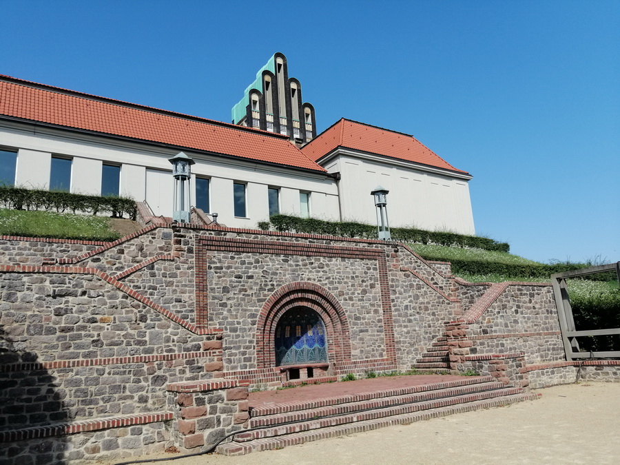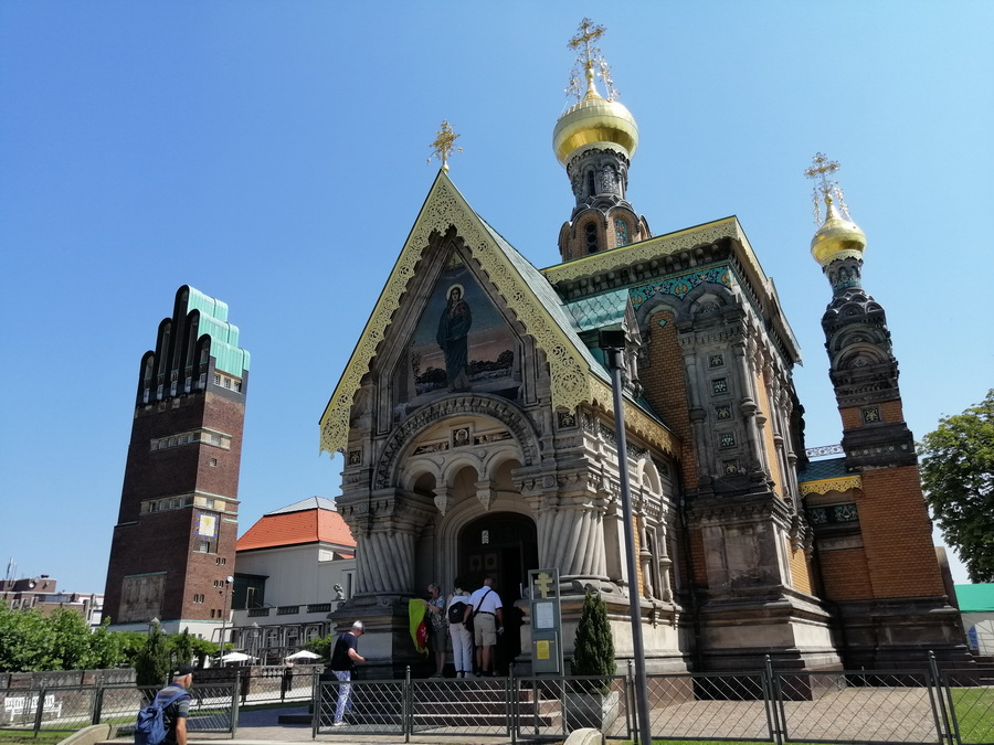 Die Darmstädter Künstlerkolonie auf der Mathildenhöhe, der höchsten Erhebung über der Stadt Darmstadt in Westmitteldeutschland, wurde 1897 von Ernst Ludwig, Großherzog von Hessen, als Zentrum für aufkommende Reformbewegungen in Architektur, Kunst und Kunsthandwerk gegründet. Die Gebäude der Kolonie wurden von ihren Künstlermitgliedern als experimentelle, frühmodernistische Wohn- und Arbeitsumgebungen geschaffen. Die Kolonie wurde im Zuge mehrerer internationaler Ausstellungen in 1901, 1904, 1908 und 1914 erweitert. Heute zeugt sie von der frühen modernen Architektur, Stadtplanung und Landschaftsgestaltung, die stark von der Arts-and-Crafts-Bewegung sowie der Wiener Secession beeinflusst waren. Das serielle Welterbe umfasst zwei Teilbereiche mit insgesamt 23 Elementen, darunter den Hochzeitsturm (1908), die Ausstellungshalle (1908), den Platanenhain (1833, 1904–14), die Russische Kapelle St. Maria Magdalena (1897–99), das Lilienbecken, das Gottfried-Schwab-Denkmal (1905), die Pergola und den Garten (1914), den Gartenpavillon „Schwanentempel“ (1914), den Ernst-Ludwig-Brunnen sowie die 13 Häuser und Künstlerateliers, die für die Darmstädter Künstlerkolonie und die internationalen Ausstellungen errichtet wurden. Eine Drei-Häuser-Gruppe, die für die Ausstellung von 1904 gebaut wurde, bildet ein zusätzliches Element.