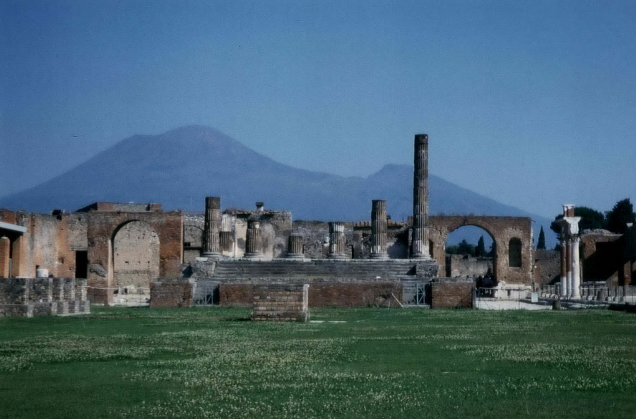 Als der Vesuv am 24. August 79 n. Chr. ausbrach, verschlang er die beiden blühenden römischen Städte Pompeji und Herculaneum sowie die vielen wohlhabenden Villen der Umgebung. Diese wurden seit Mitte des 18. Jahrhunderts schrittweise ausgegraben und der Öffentlichkeit zugänglich gemacht. Die Weite der Handelsstadt Pompeji steht im Kontrast zu den kleineren, aber besser erhaltenen Überresten des Ferienortes Herculaneum, während die prächtigen Wandmalereien der Villa Oplontis in Torre Annunziata einen lebendigen Eindruck vom opulenten Lebensstil der wohlhabenden Bürger des frühen Römischen Reiches vermitteln. Pompeji ist mit seinen gut erhaltenen Gebäuden auf einer Ausgrabungsfläche von 44 Hektar die einzige archäologische Stätte der Welt, die ein vollständiges Bild einer antiken römischen Stadt liefert. Das Hauptforum wird von zahlreichen imposanten öffentlichen Gebäuden wie dem Kapitol, der Basilika und Tempeln flankiert. Innerhalb der Stadt gibt es außerdem zahlreiche öffentliche Badeanlagen, zwei Theater und ein Amphitheater.