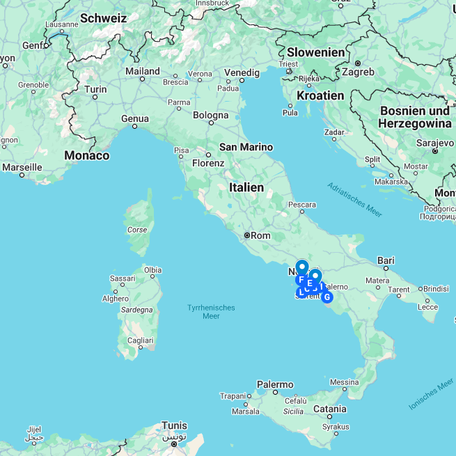Herkulaneum * Vesuv * Capri * Pompeji * Neapel * Paestum * Salerno * Positano * Amalfi * Ravallo * Amalfi Küste * Sorrent * Oplontis